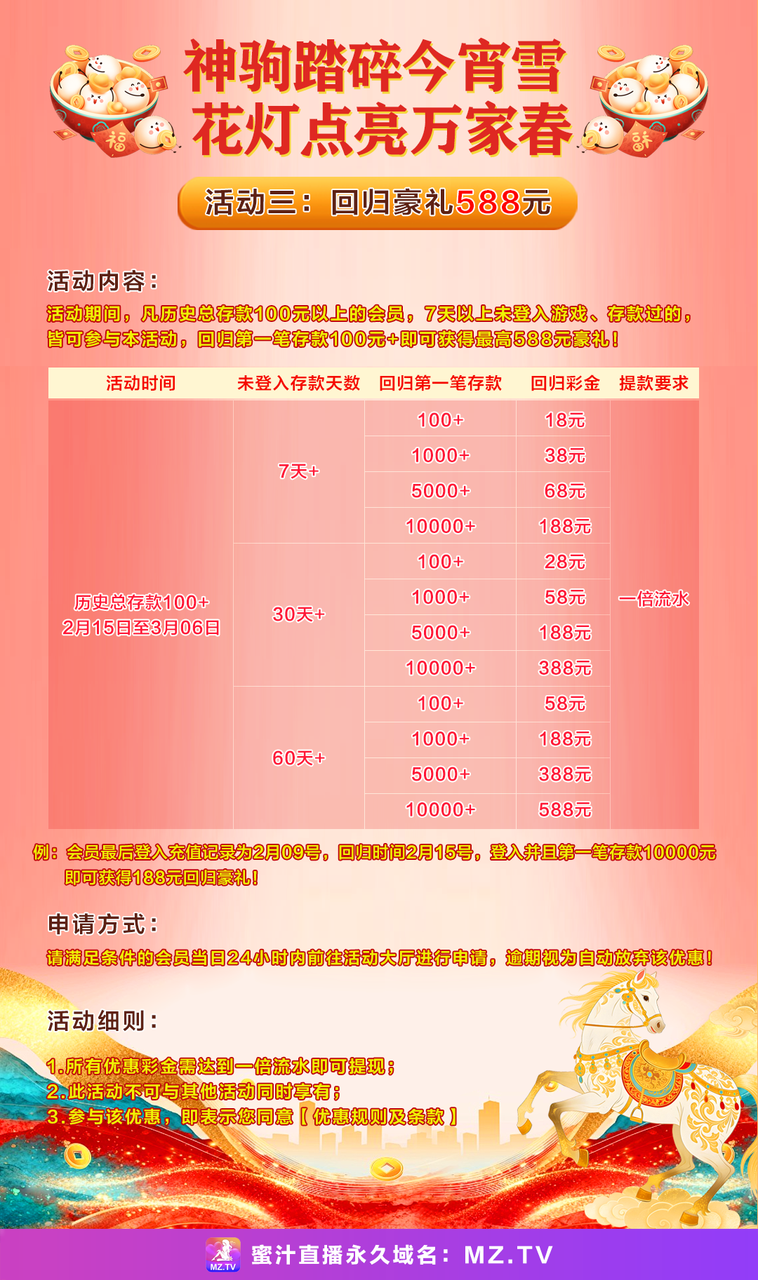 神驹踏碎今宵雪 花灯点亮万家春④ 打码加赠38888元